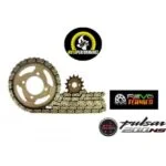 El kit de arrastre de tu AKT TTR 180-200 es fabricado bajo los mas altos estándares de calidad, incluyen procesos de tratamientos térmicos que le dan un toque original a los piñones garantizando a su vez una larga duración.